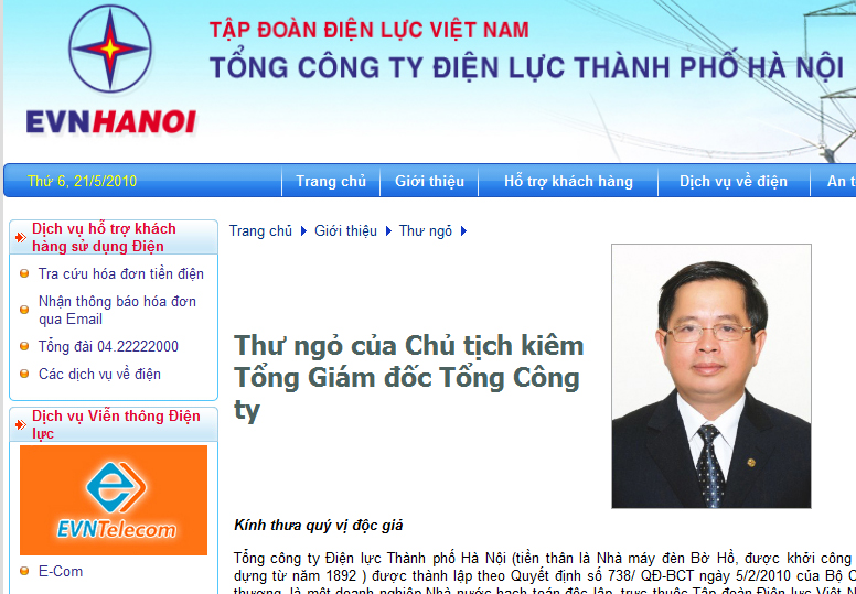 Tháng 5/2010 đội kỹ thuật công ty AWAS đã triển khai cài đặt thành công website tập đoàn điện lực TP Hà Nội tại địa chỉ http://evnhanoi.vn, http://evnhanoi.com.vn, với một loạt các tính năng mới ưu việt nổi trội.