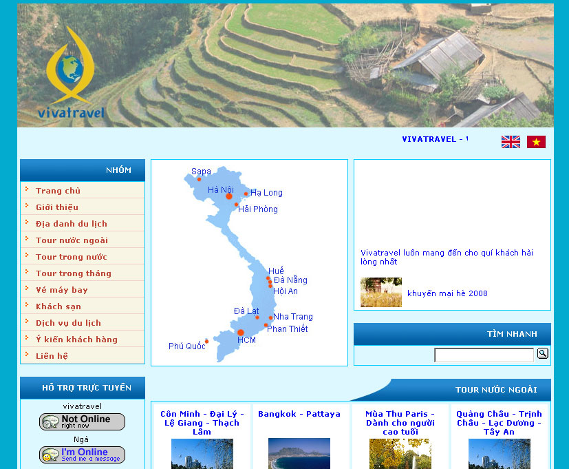 VIVATRAVEL is one of the leading tour operators in Vietnam for inbound and outbound tours, computerised on-line air booking office, visa application services, hotel reservation worldwide, car rental services and business contacts. We have offices in Hanoi, and Ho Chi Minh city and we offer a wide network of business cooperation contacts in all the major cities in Vietnam.