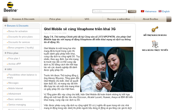 Với kinh nghiệm triển khai cổng thông tin tại nhiều đơn vị và khả năng đáp ứng công nghệ cao, công ty AWAS đã vượt qua các đơn vị dự thầu khác để trở thành đối tác của GTEL. Ngày 8/7/2008, Tổng công ty Viễn thông toàn cầu (GTel) của Bộ Công an và tập đoàn VimPelcom (LB Nga) đã ký kết để thành lập mạng di động GTel Mobile. GTel Mobile sẽ đi theo công nghệ GSM và là mạng di động thứ 7 tại Việt Nam.
