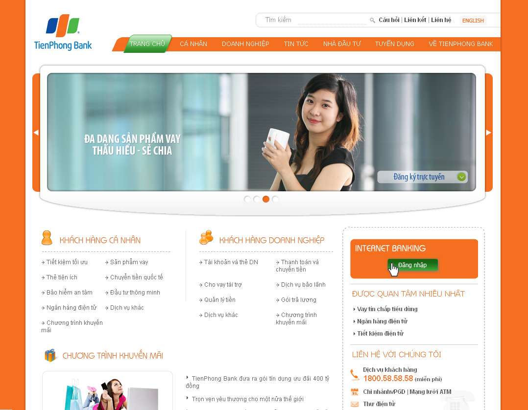 Website mới với nhiều tính năng cho phép khách hàng của ngân hàng TPB có thể liên hệ làm việc nhanh chóng với nhiều bộ phận liên quan khác nhau : bộ phận chăm soc khách hàng, bộ phận xây dựng thương hiệu, bộ phận tư vấn đầu tư hoặc vay vốn, ... website cung cấp một loạt các tiện ích ứng dụng : như các phần mềm hỗ trợ nghiệp vụ ngân hàng. Nội dung trang web phong phú và đang dạng dưới dạng tin tức, video, hình ảnh, ..