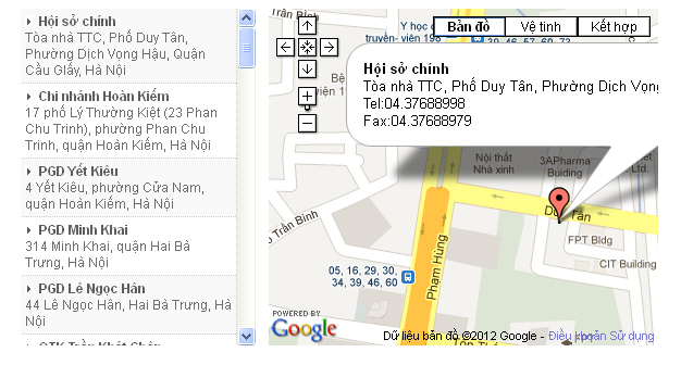 Tra cứu thông tin phòng giao dịch, địa chỉ đặt cây ATM bằng bản đồ số (kết hợp google map)
