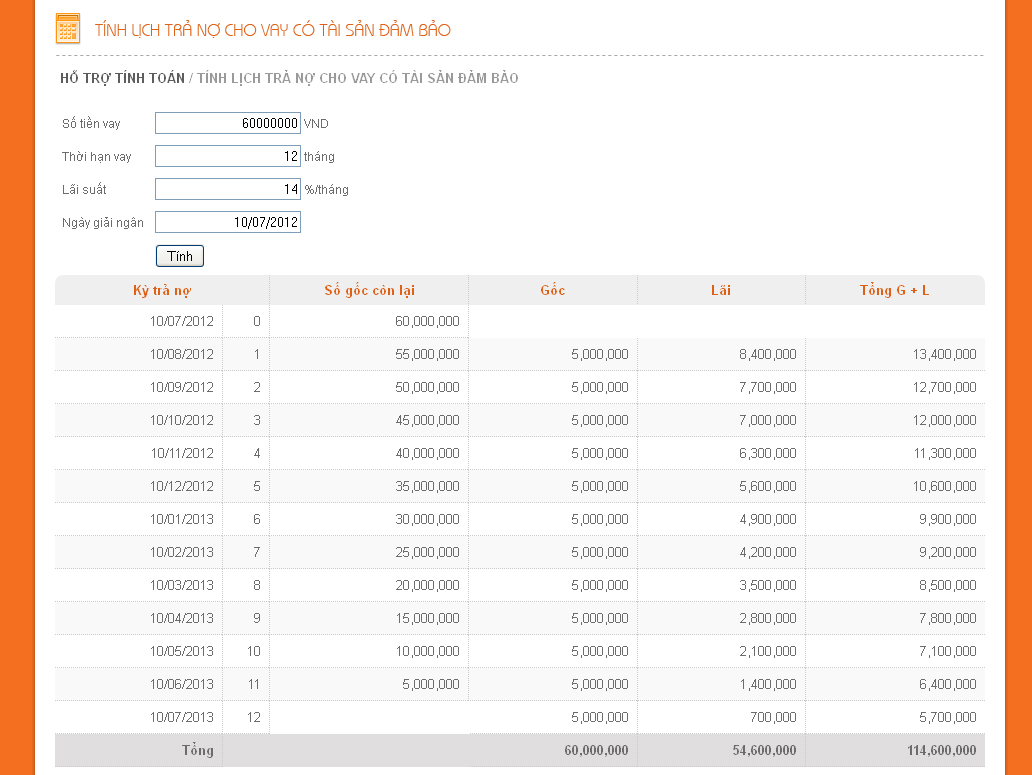 Phần mềm hỗ trợ tích hợp các nghiệp vụ ngân hàng : nghiệp vụ vay với tài sản đảm bảo, khách hàng có thể tự động tính được kết quả qua công cụ hỗ trợ trên nền web