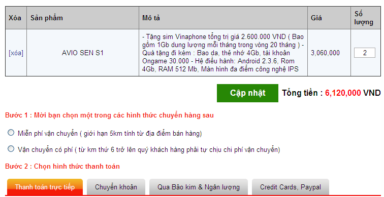 Module giỏ hàng chuyên nghiệp, dễ sử dụng. Chỉ bằng 1 click chuột khách hàng có thể mua được sản phầm. Đồng thời, khách hàng sẽ có nhiều sự chọn lựa về hình thức vận chuyển và phương thức thanh toán khác nhau.